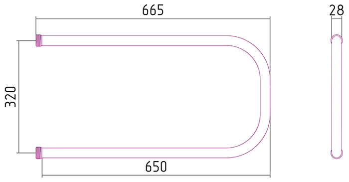 —Полотенцесушитель водяной Стилье П-образный 320х650 резьба-сгон 1"