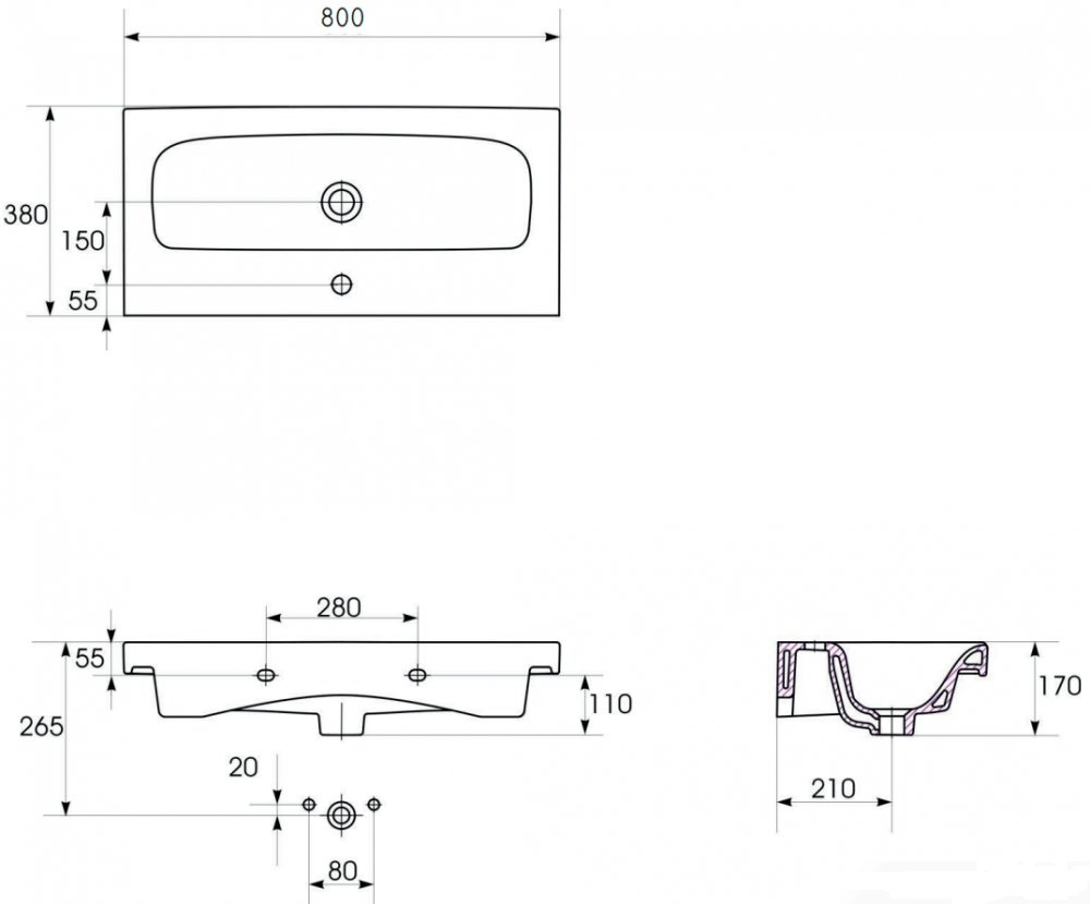 Раковина Cersanit MODUO S-UM-MOD80/1 80