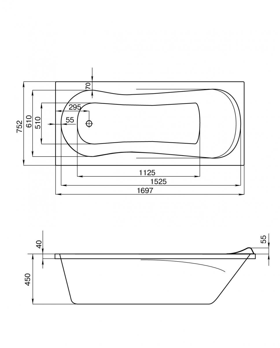 Ванна акриловая Santek КАЛЕДОНИЯ 1.WH30.2.391 170x75 см.