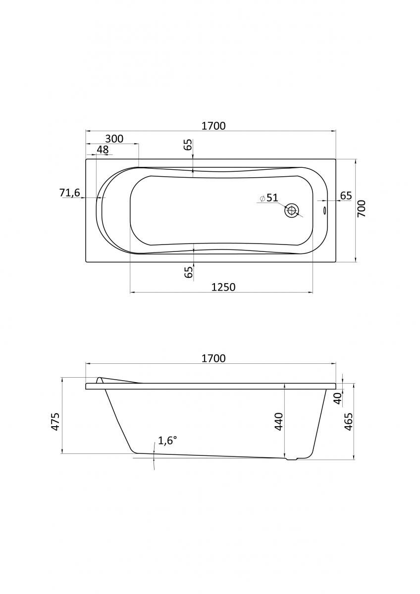 Ванна акриловая Santek ТЕНЕРИФЕ 1.WH30.2.207 170x70 см.