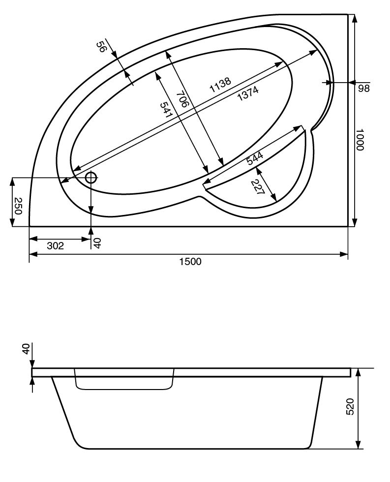 Ванна акриловая Santek ШРИ-ЛАНКА 1.WH30.2.394 150x100 см. левая